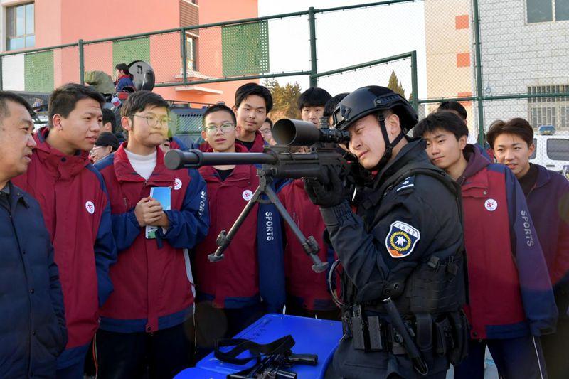 兰州铁路公安局武威公安处以第六个中国人民警察节为契机,将“警营开放日”活动搬进武威铁路中学,组织特警、武威南站派出所民警入校开展普法安全与沉浸式警务体验活动。通过应急演练、装备展示、警犬演示、互动问答等丰富形式,让警营元素走进校园,为师生们带来一场零距离、全方位的警营体验课。