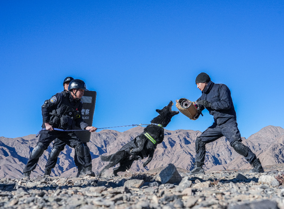 为进一步提升边境管控能力,1月13日,新疆出入境边防检查总站克州边境管理支队巴音库鲁提边境检查站组织开展警犬扑咬、搜查等实战化科目训练,进一步锤炼警犬的实战技能与训导员的协同作战能力,筑牢边境安全防线。
