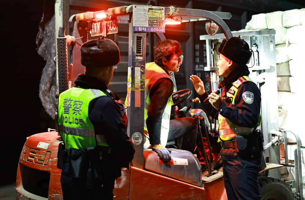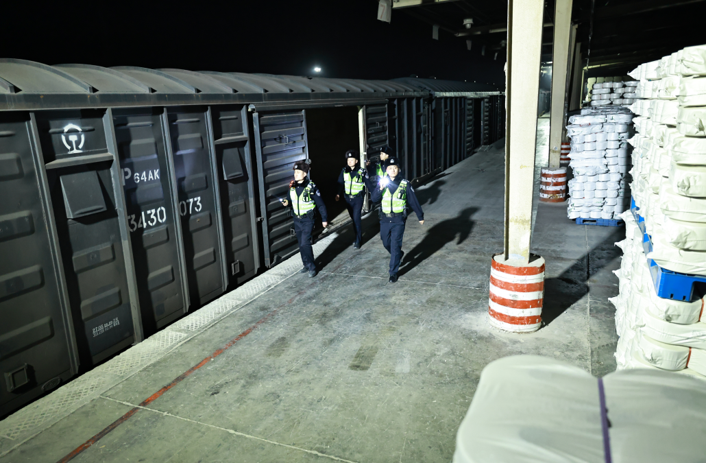乌鲁木齐铁路公安局库尔勒公安处阿克苏站派出所全力保障辖区“雪莲速运”棉花班列重点物资运输,抽调骨干民警开展治安巡逻、消防隐患排查、作业人员安全宣传等工作,全力保障棉纱专列顺利开行。