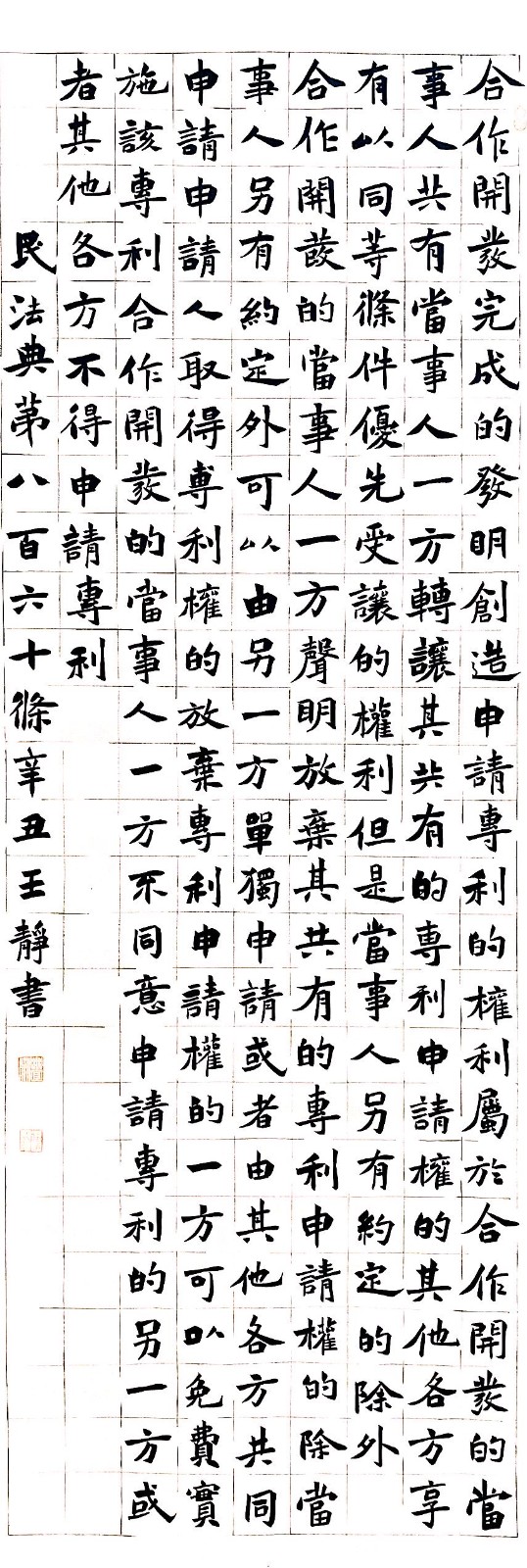 民法典第八百六十条 合作开发完成的发明创造,申请专利的权利属于合作开发的当事人共有;当事人一方转让其共有的专利申请权的,其他各方享有以同等条件优先受让的权利。但是,当事人另有约定的除外。
