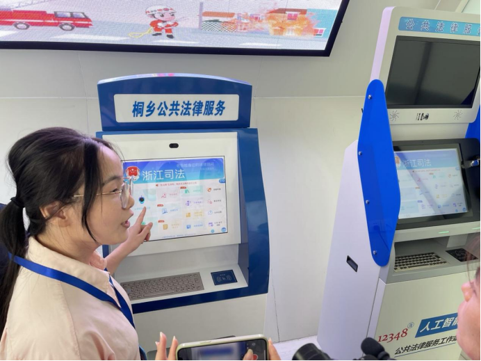 乌镇司法所副所长郭芸说,为满足群众快速获得公共法律服务的需求,乌镇司法所在人流密集处打造了“24小时法超市”,为有需要的群众提供法律机器人问答、律师视频解答、法律文书下载等“一站式”公共法律服务。