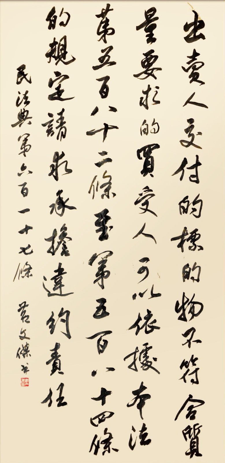 民法典第六百一十七条 出卖人交付的标的物不符合质量要求的,买受人可以依据本法第五百八十二条至第五百八十四条的规定请求承担违约责任。
