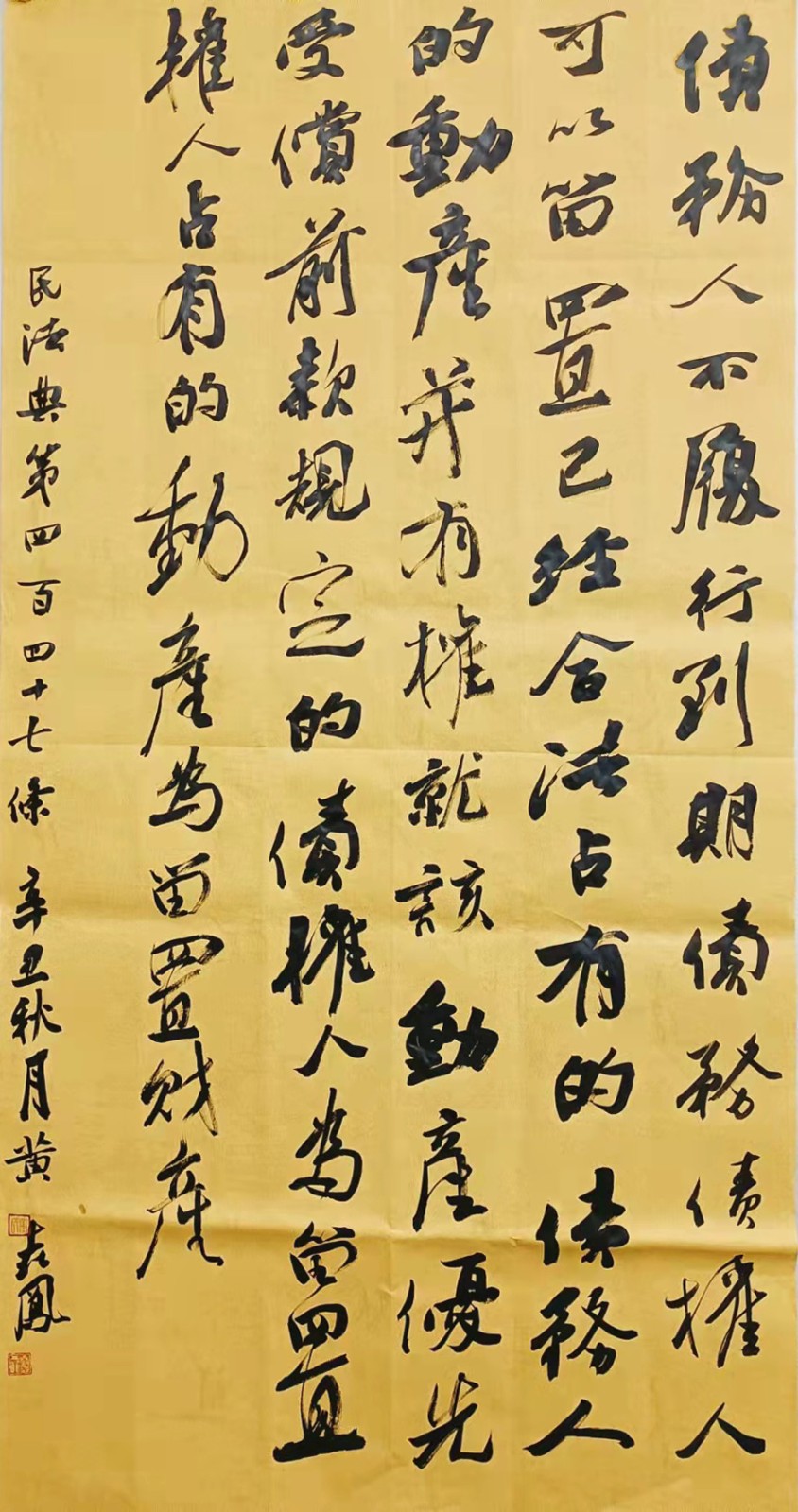 “书·法”活动以书写《中华人民共和国民法典》法条开笔,未来将对准更多的法律。