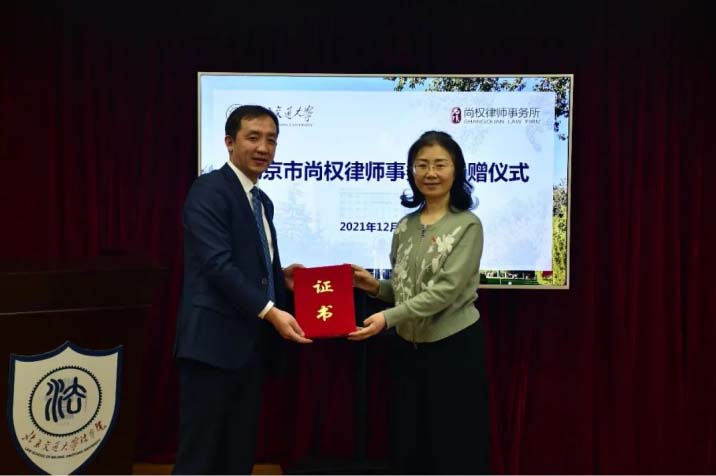 2021年12月29日,北京尚权律师事务所捐赠暨合作协议签署仪式在北京举行。北京交通大学对外联络合作处处长、教育基金会秘书长郭雪萌,对外联络合作处副处长、教育基金会副秘书长陈磊,法学院党委书记于亚光,法学院院长李巍涛,法学院党委副书记、副院长王莹,法学院副院长朱本欣,法学院副院长郑飞,以及北京尚权律师事务所副主任高文龙、执行主任白雪,北京尚权(深圳)律师事务所主任张宇鹏等出席了签约仪式。捐赠仪式由王莹主持。