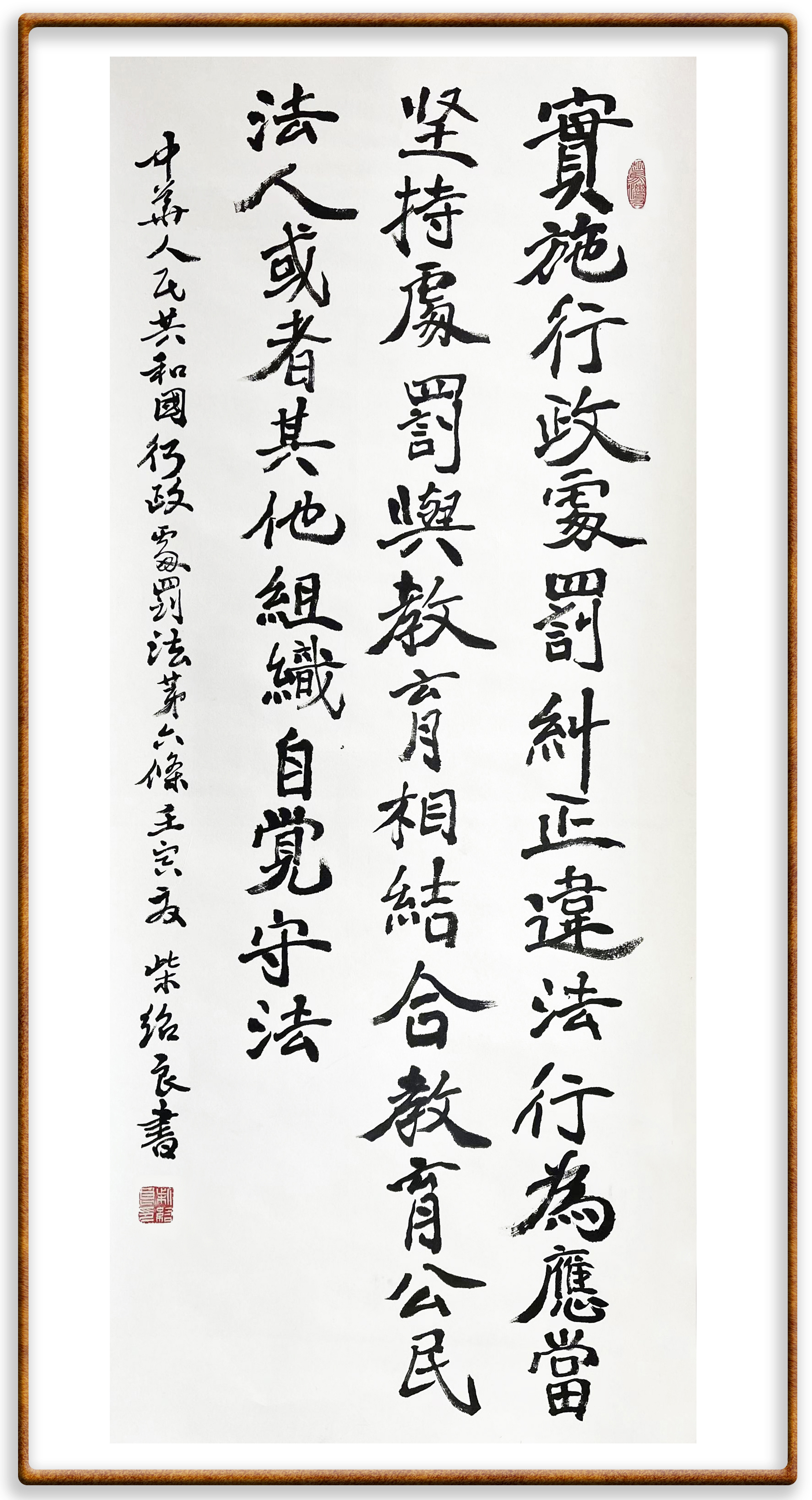 继《中华人民共和国民法典》《中华人民共和国土地管理法》《中华人民共和国土地管理法实施条例》《中华人民共和国法律援助法》之后,法治日报社联合北京市司法局、北京书法家协会,将笔端对准《中华人民共和国宪法》和《中华人民共和国行政处罚法》。