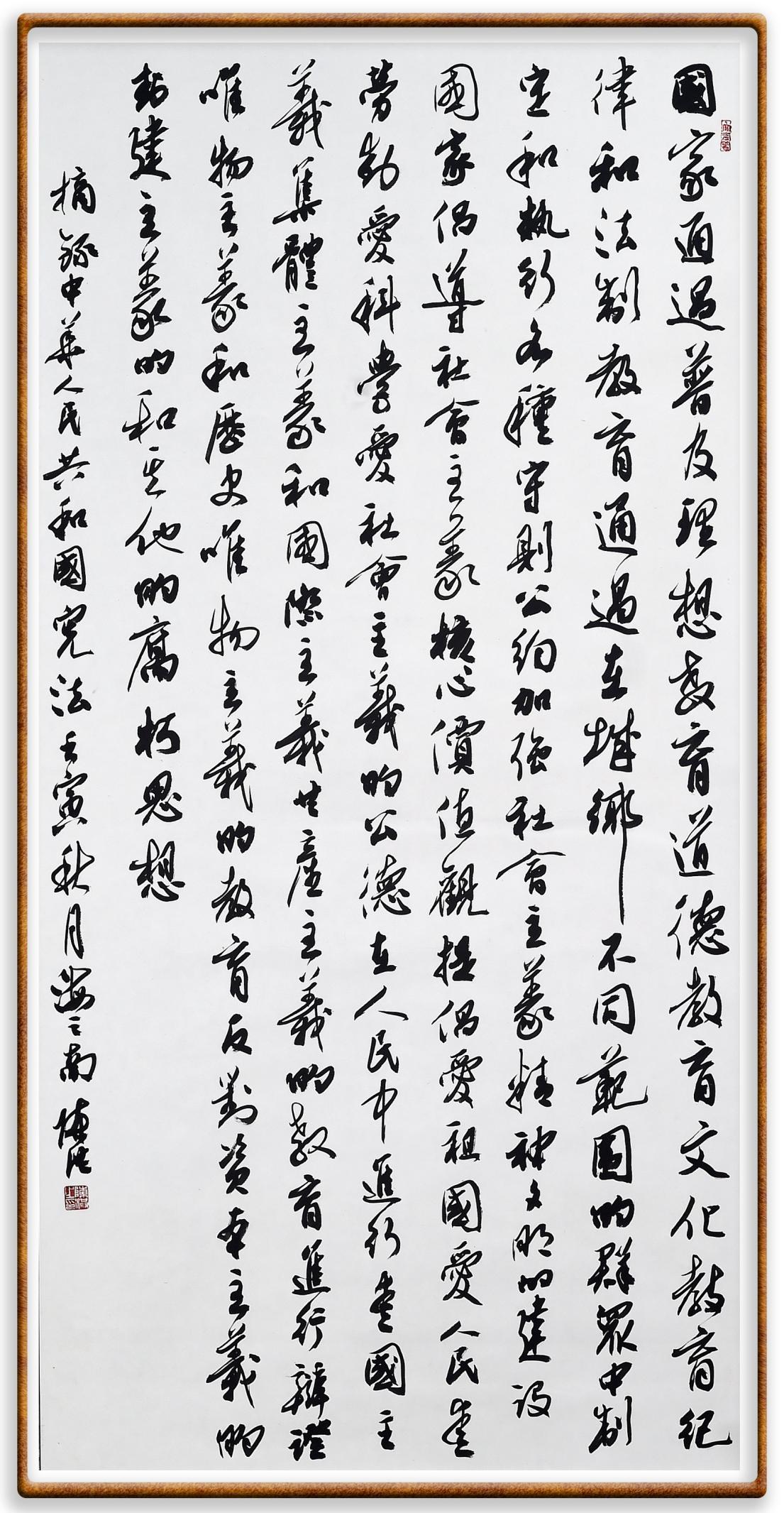 继《中华人民共和国民法典》《中华人民共和国土地管理法》《中华人民共和国土地管理法实施条例》《中华人民共和国法律援助法》之后,法治日报社联合北京市司法局、北京市书法家协会,将笔端对准《中华人民共和国宪法》和《中华人民共和国行政处罚法》。