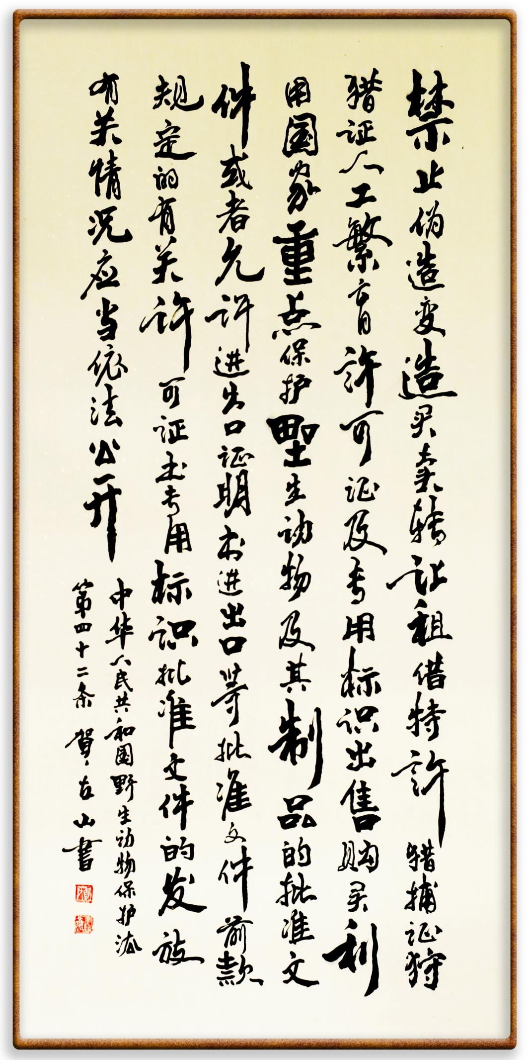 野生动物保护法第四十二条 禁止伪造、变造、买卖、转让、租借特许猎捕证、狩猎证、人工繁育许可证及专用标识,出售、购买、利用国家重点保护野生动物及其制品的批准文件,或者允许进出口证明书、进出口等批准文件。