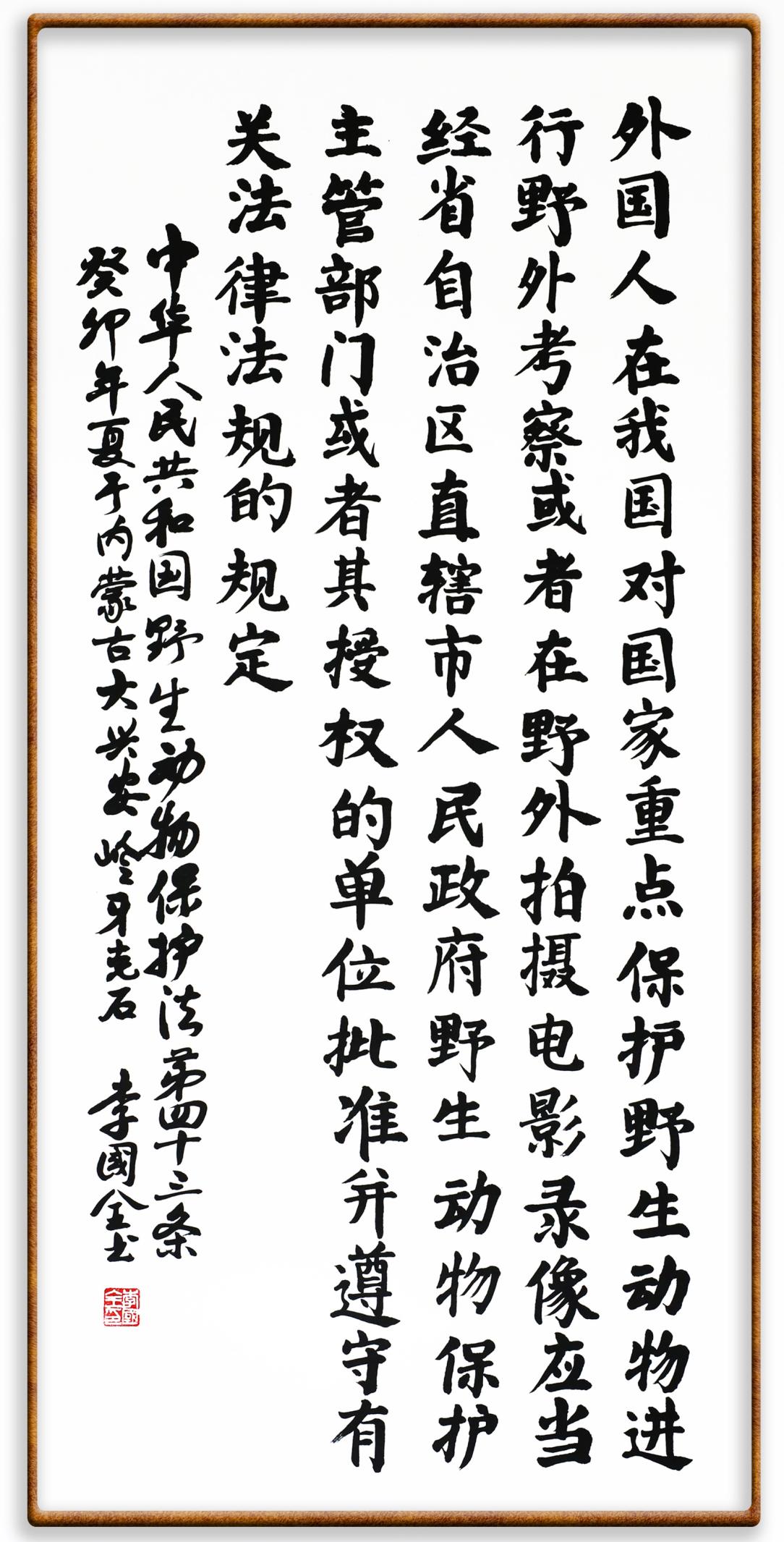野生动物保护法第四十三条 外国人在我国对国家重点保护野生动物进行野外考察或者在野外拍摄电影、录像,应当经省、自治区、直辖市人民政府野生动物保护主管部门或者其授权的单位批准,并遵守有关法律法规的规定。