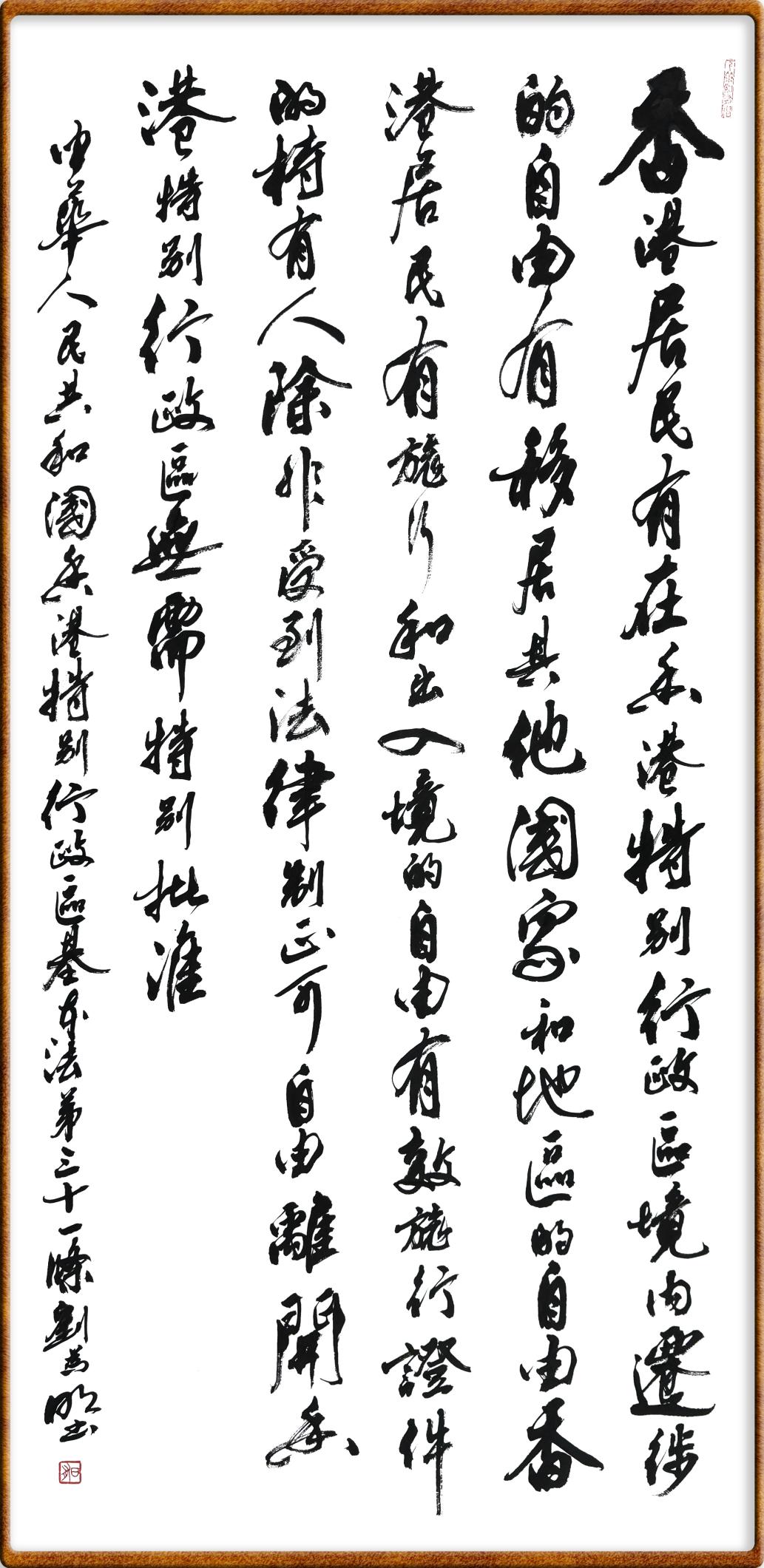 香港基本法第三十一条 香港居民有在香港特别行政区境内迁徙的自由,有移居其他国家和地区的自由。香港居民有旅行和出入境的自由。有效旅行证件的持有人,除非受到法律制止,可自由离开香港特别行政区,无需特别批准。