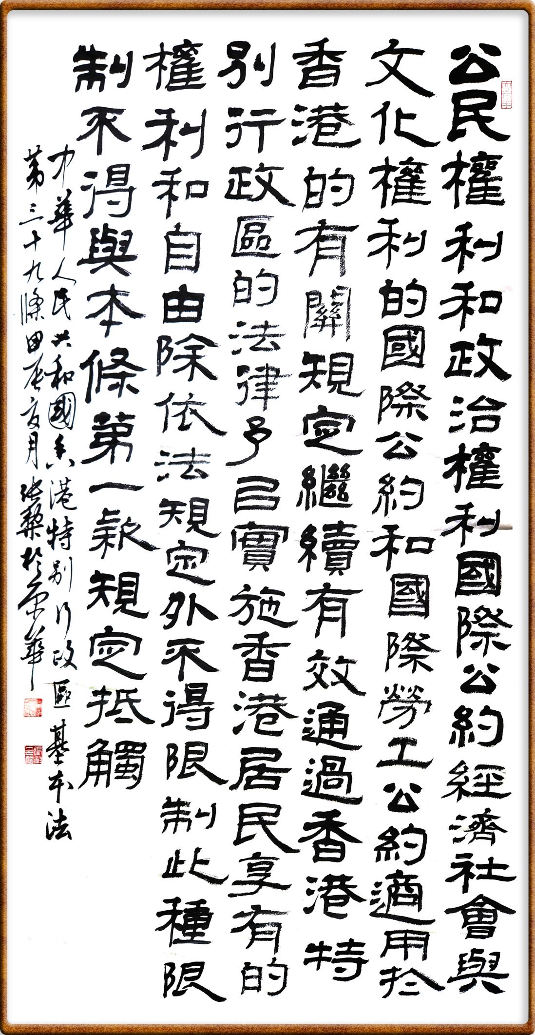 香港基本法第三十九条 《公民权利和政治权利国际公约》、《经济、社会与文化权利的国际公约》和国际劳工公约适用于香港的有关规定继续有效,通过香港特别行政区的法律予以实施。