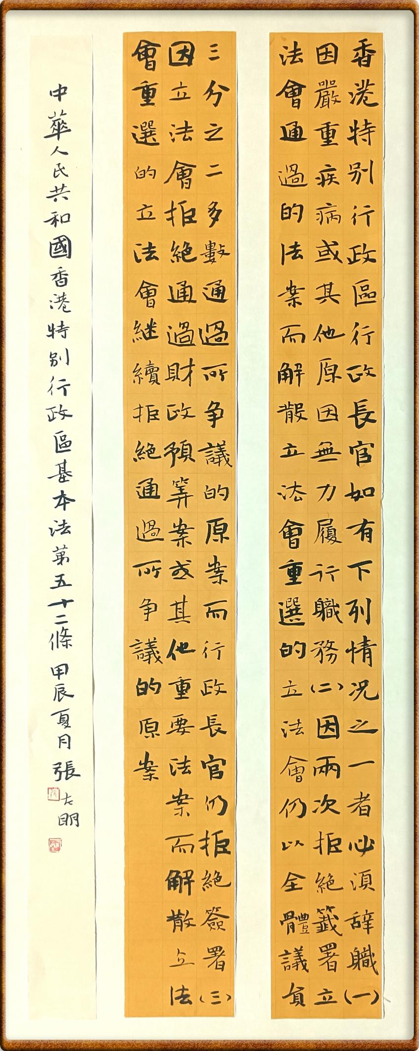 香港基本法第五十二条 香港特别行政区行政长官如有下列情况之一者必须辞职: