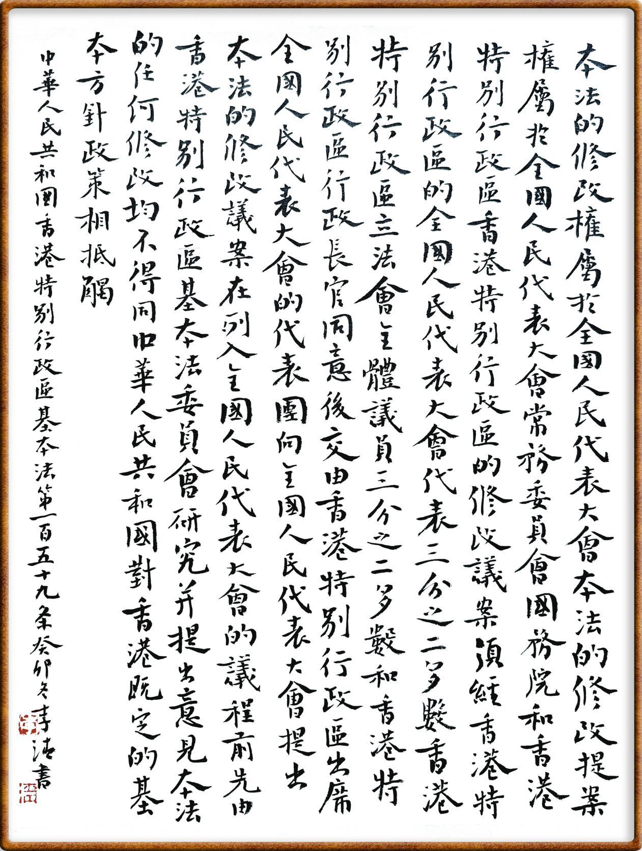 香港基本法第一百五十九条 本法的修改权属于全国人民代表大会。