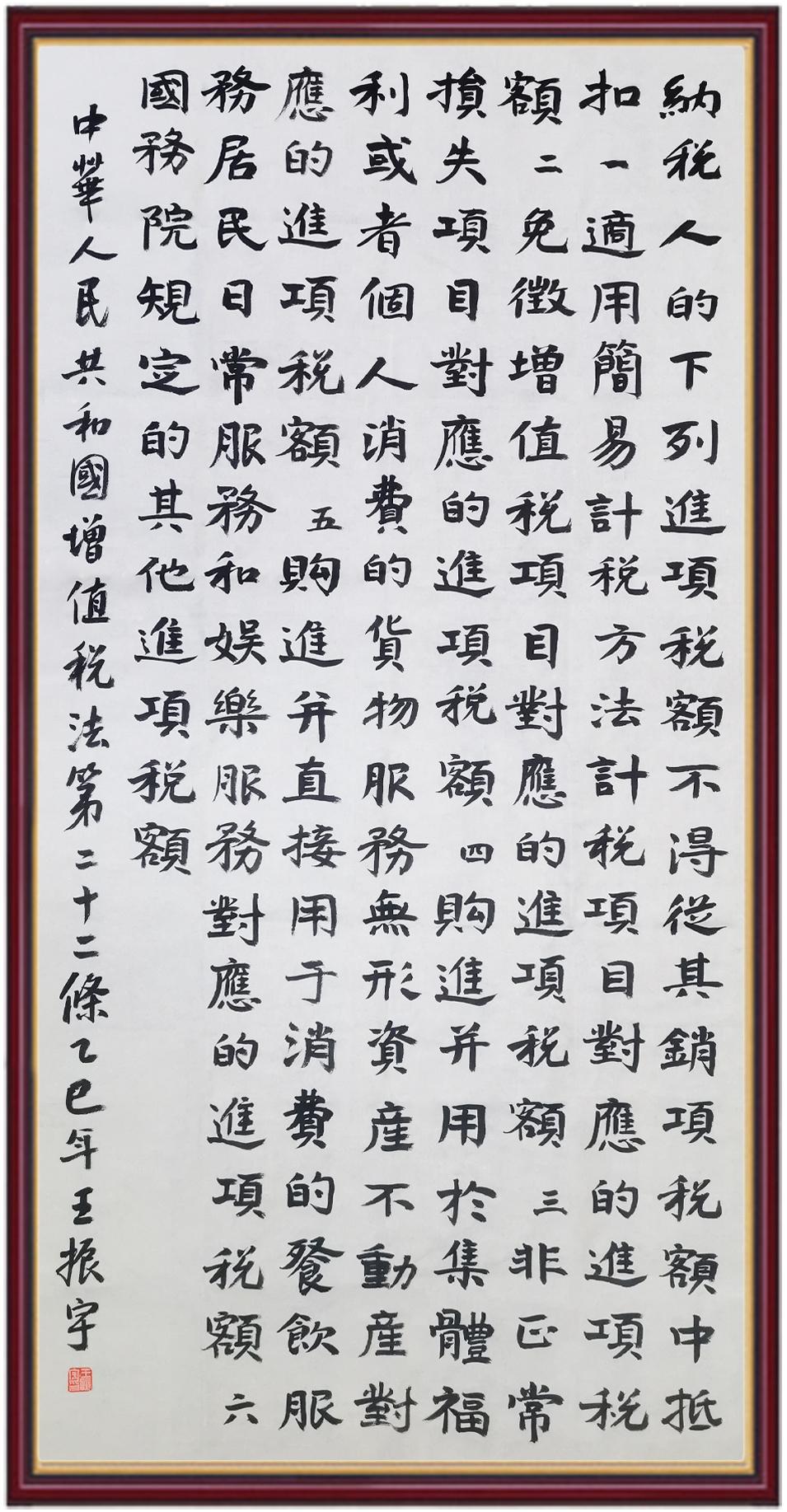 税收一头连着国计,一头连着民生。全面推进依法治税,是全面依法治国基本方略在税收领域的集中体现。《中华人民共和国增值税法》将于2026年1月1日起施行,对全面落实税收法定原则、健全有利于高质量发展的增值税制度、规范增值税的征收和缴纳、保护纳税人合法权益具有重要意义。继书写《中华人民共和国民法典》《中华人民共和国宪法》《中华人民共和国国旗法》《中华人民共和国国徽法》《中华人民共和国国歌法》《中华人民共和国法官法》《中华人民共和国黄河保护法》等法律法规之后,法制日报社将笔端对准《中华人民共和国增值税法》。