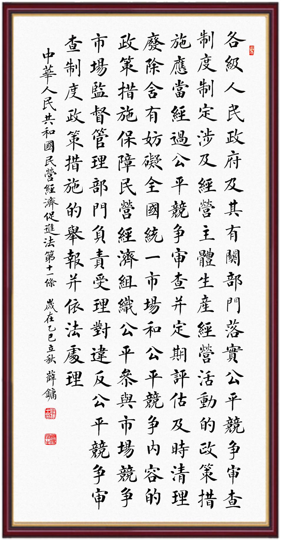 《中华人民共和国民营经济促进法》自今年5月20日起施行。作为我国首部专门关于民营经济发展的基础性法律,民营经济促进法将支持和保障民营经济发展的法律制度融入中国特色社会主义法律体系,具有重大的法治意义,为促进民营经济持续、健康、高质量发展提供了坚实的法治保障。为更好地学习、宣传、贯彻这部法律,法治日报社联合司法部普法与依法治理局,开展“‘书·法’系列活动之书写《中华人民共和国民营经济促进法》”活动。