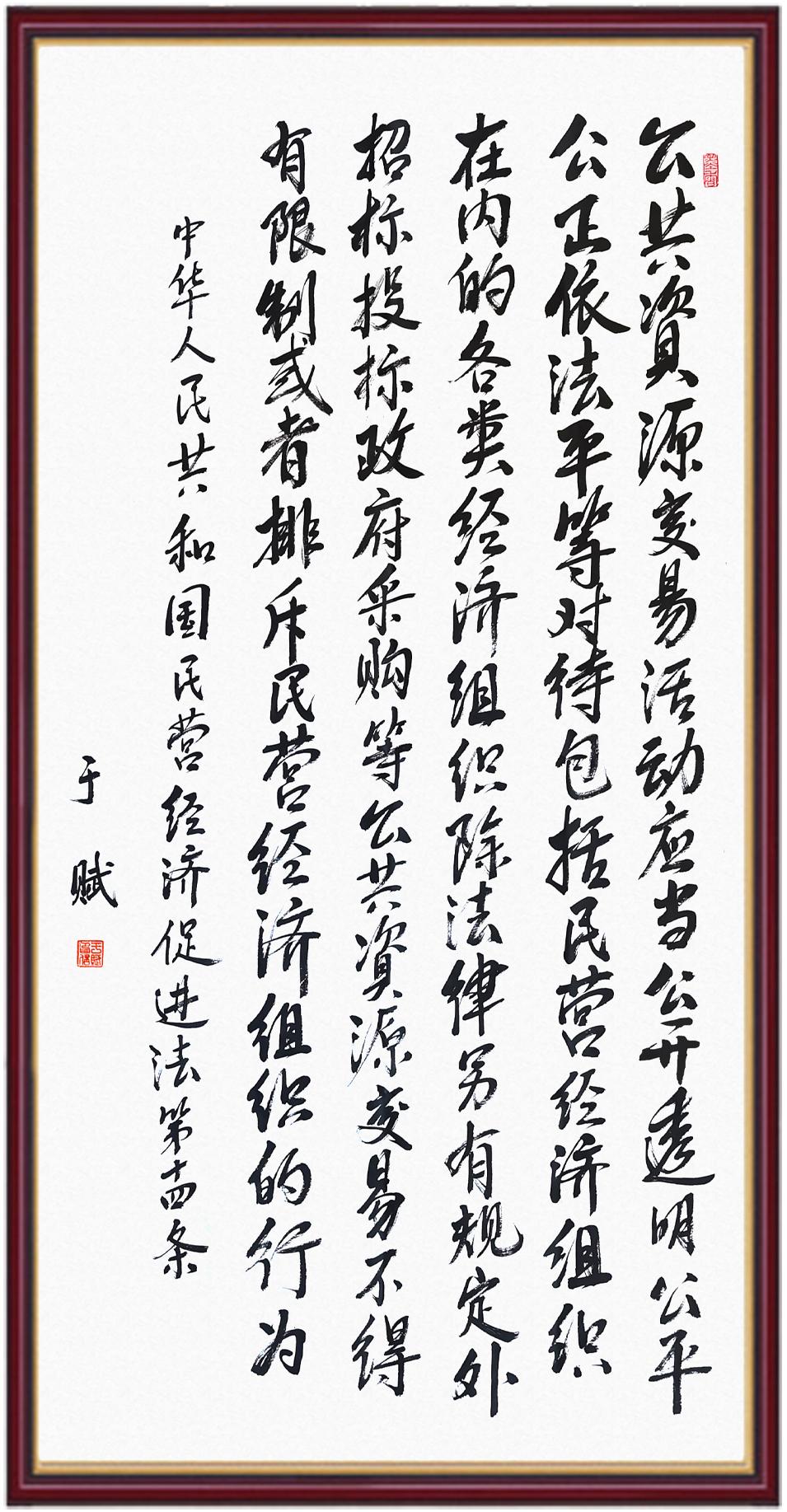《中华人民共和国民营经济促进法》自今年5月20日起施行。作为我国首部专门关于民营经济发展的基础性法律,民营经济促进法将支持和保障民营经济发展的法律制度融入中国特色社会主义法律体系,具有重大的法治意义,为促进民营经济持续、健康、高质量发展提供了坚实的法治保障。为更好地学习、宣传、贯彻这部法律,法治日报社联合司法部普法与依法治理局,开展“‘书·法’系列活动之书写《中华人民共和国民营经济促进法》”活动。