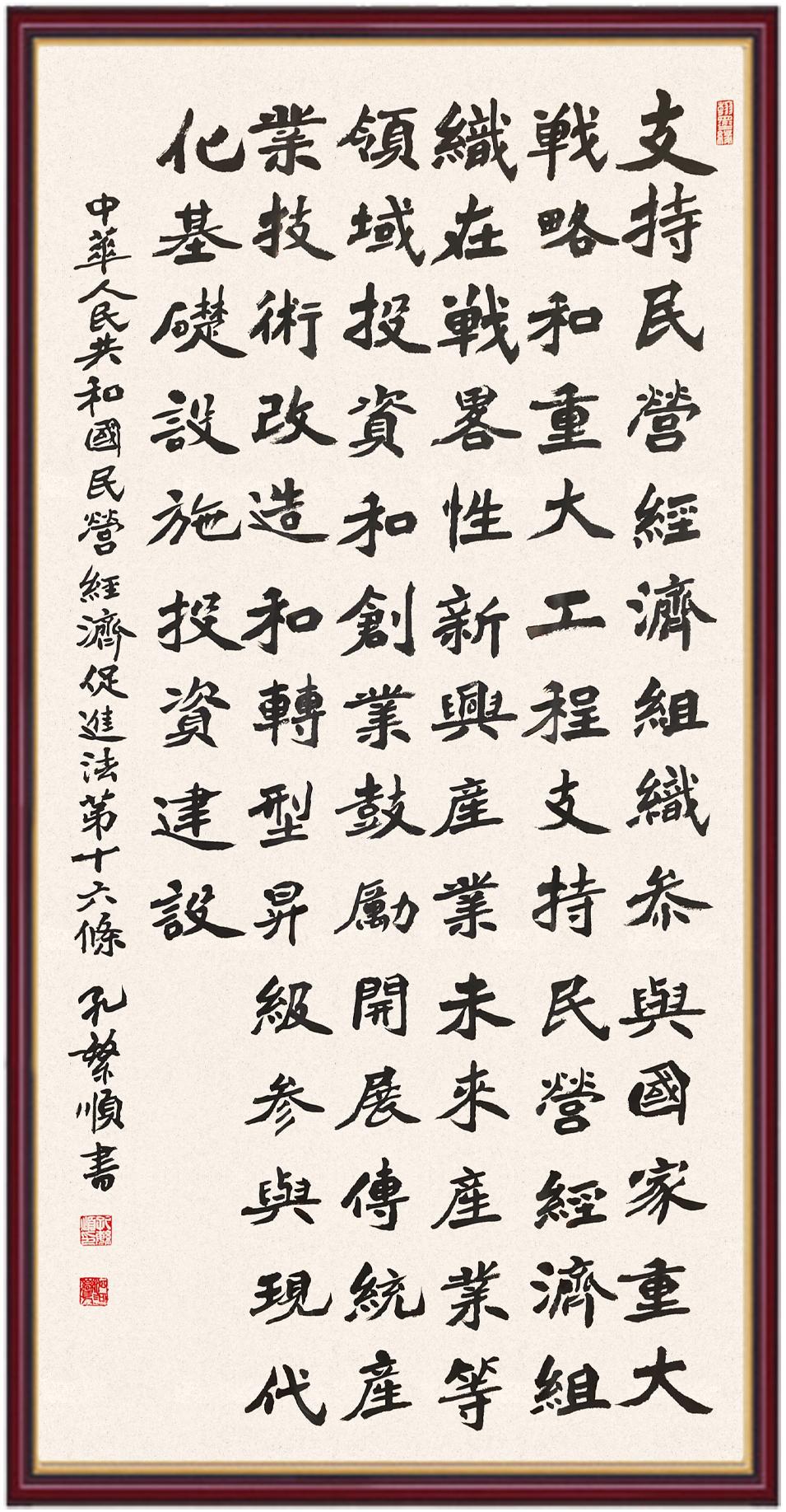 《中华人民共和国民营经济促进法》自今年5月20日起施行。作为我国首部专门关于民营经济发展的基础性法律,民营经济促进法将支持和保障民营经济发展的法律制度融入中国特色社会主义法律体系,具有重大的法治意义,为促进民营经济持续、健康、高质量发展提供了坚实的法治保障。为更好地学习、宣传、贯彻这部法律,法治日报社联合司法部普法与依法治理局,开展“‘书·法’系列活动之书写《中华人民共和国民营经济促进法》”活动。