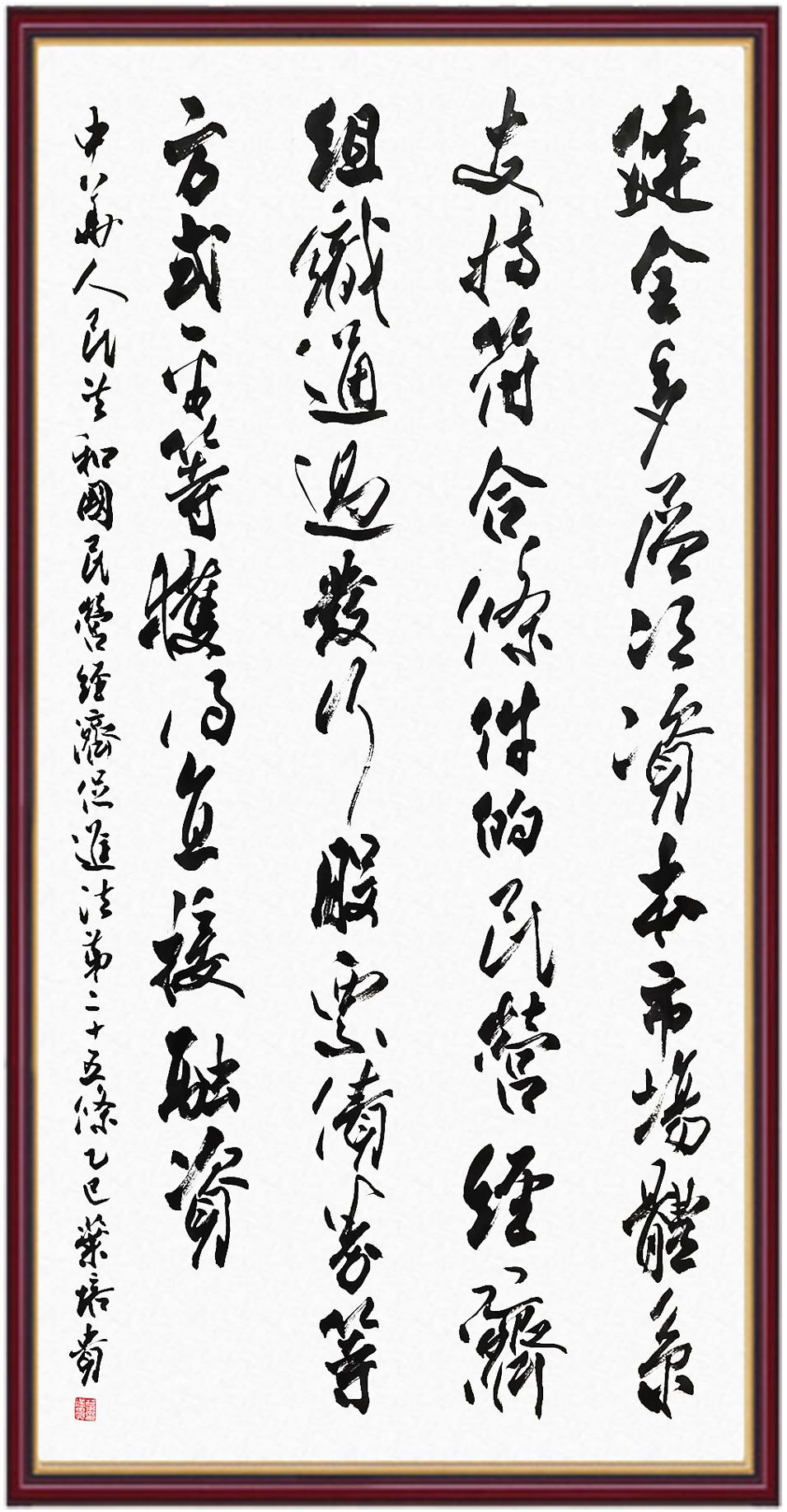《中华人民共和国民营经济促进法》自今年5月20日起施行。作为我国首部专门关于民营经济发展的基础性法律,民营经济促进法将支持和保障民营经济发展的法律制度融入中国特色社会主义法律体系,具有重大的法治意义,为促进民营经济持续、健康、高质量发展提供了坚实的法治保障。为更好地学习、宣传、贯彻这部法律,法治日报社联合司法部普法与依法治理局,开展“‘书·法’系列活动之书写《中华人民共和国民营经济促进法》”活动。