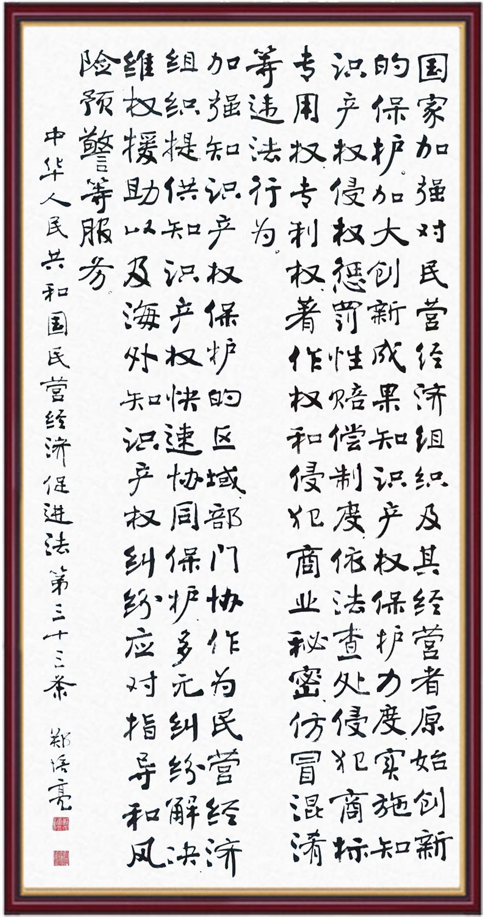 《中华人民共和国民营经济促进法》自今年5月20日起施行。作为我国首部专门关于民营经济发展的基础性法律,民营经济促进法将支持和保障民营经济发展的法律制度融入中国特色社会主义法律体系,具有重大的法治意义,为促进民营经济持续、健康、高质量发展提供了坚实的法治保障。为更好地学习、宣传、贯彻这部法律,法治日报社联合司法部普法与依法治理局,开展“‘书·法’系列活动之书写《中华人民共和国民营经济促进法》”活动。