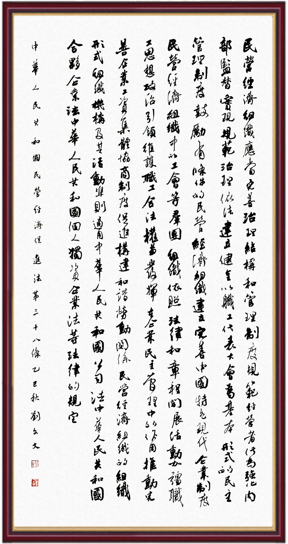 《中华人民共和国民营经济促进法》自今年5月20日起施行。作为我国首部专门关于民营经济发展的基础性法律,民营经济促进法将支持和保障民营经济发展的法律制度融入中国特色社会主义法律体系,具有重大的法治意义,为促进民营经济持续、健康、高质量发展提供了坚实的法治保障。为更好地学习、宣传、贯彻这部法律,法治日报社联合司法部普法与依法治理局,开展“‘书·法’系列活动之书写《中华人民共和国民营经济促进法》”活动。