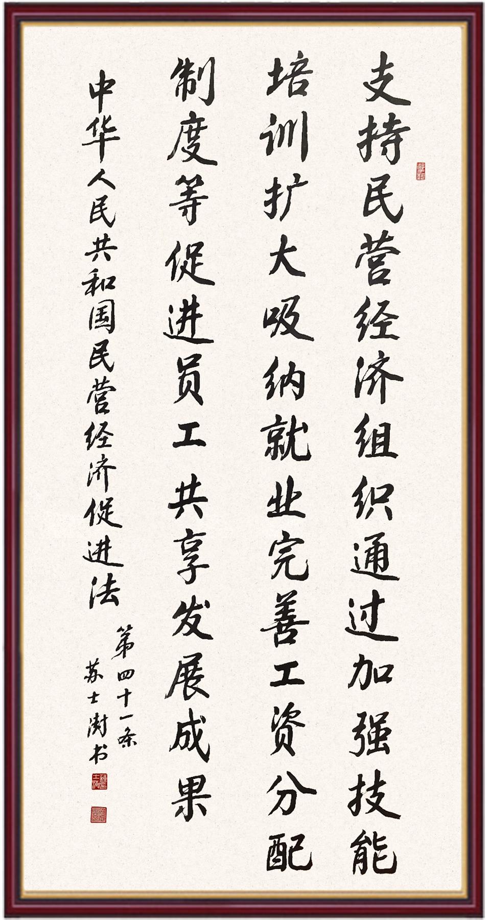 《中华人民共和国民营经济促进法》自今年5月20日起施行。作为我国首部专门关于民营经济发展的基础性法律,民营经济促进法将支持和保障民营经济发展的法律制度融入中国特色社会主义法律体系,具有重大的法治意义,为促进民营经济持续、健康、高质量发展提供了坚实的法治保障。为更好地学习、宣传、贯彻这部法律,法治日报社联合司法部普法与依法治理局,开展“‘书·法’系列活动之书写《中华人民共和国民营经济促进法》”活动。