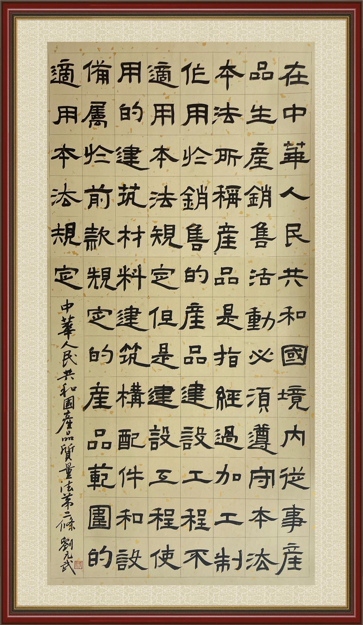 《中华人民共和国产品质量法》自1993年9月1日起开始施行,先后进行三次修正。作为产品质量领域的基本法律,产品质量法对规范产品质量管理、维护消费者合法权益、促进经济社会发展具有重要意义。为更好地学习、宣传、贯彻这部法律,在国家市场监督管理总局法规司的支持下,法治日报社开展了“‘书·法’系列活动之书写《中华人民共和国产品质量法》”活动。
