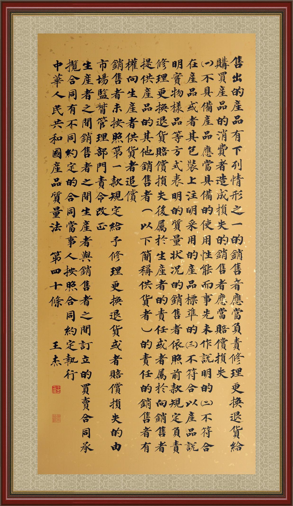 《中华人民共和国产品质量法》自1993年9月1日起开始施行,先后进行三次修正。作为产品质量领域的基本法律,产品质量法对规范产品质量管理、维护消费者合法权益、促进经济社会发展具有重要意义。为更好地学习、宣传、贯彻这部法律,在国家市场监督管理总局法规司的支持下,法治日报社开展了“‘书·法’系列活动之书写《中华人民共和国产品质量法》”活动。