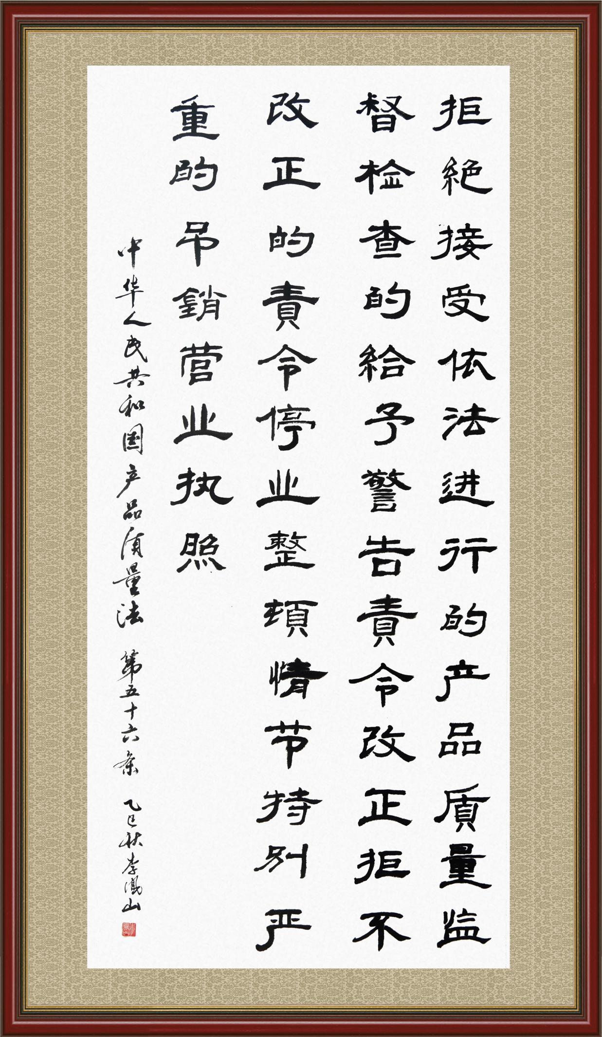 《中华人民共和国产品质量法》自1993年9月1日起开始施行,先后进行三次修正。作为产品质量领域的基本法律,产品质量法对规范产品质量管理、维护消费者合法权益、促进经济社会发展具有重要意义。为更好地学习、宣传、贯彻这部法律,在国家市场监督管理总局法规司的支持下,法治日报社开展了“‘书·法’系列活动之书写《中华人民共和国产品质量法》”活动。