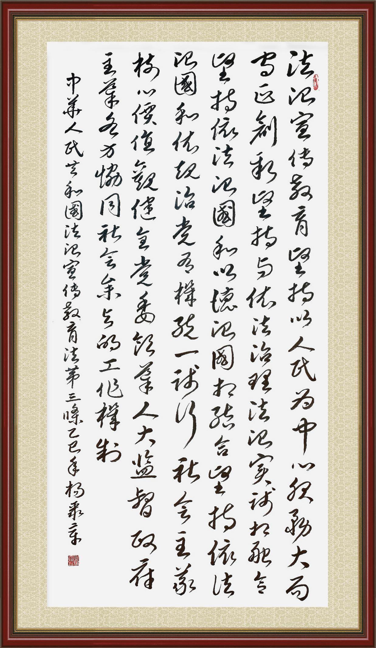 2020年7月11日,由法治日报社主办的“书·法”系列活动正式启动,先后书写《中华人民共和国民法典》《中华人民共和国宪法》《中华人民共和国民营经济促进法》等21部法律法规。