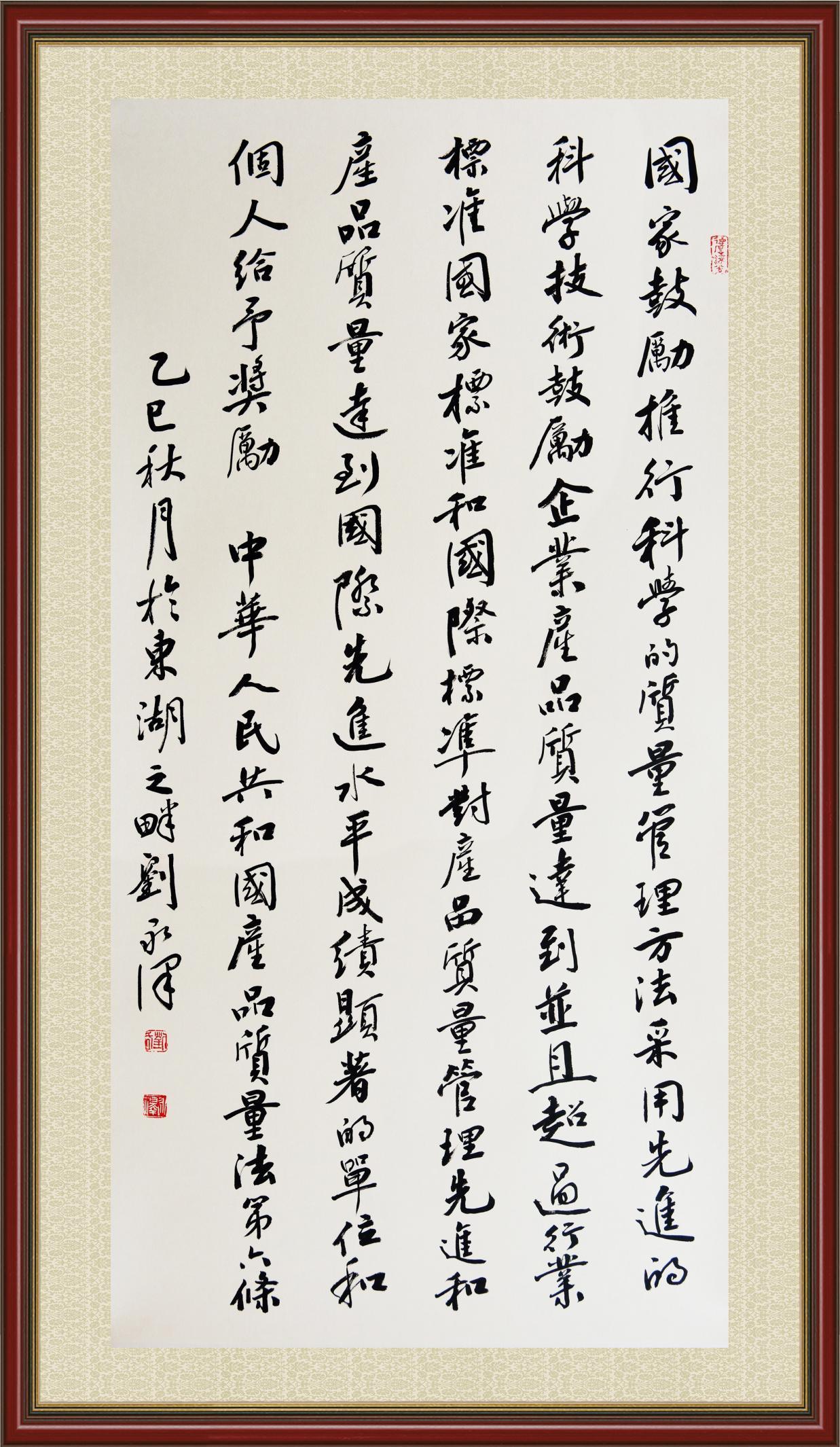 书·法 刘永泽:产品质量法第六条