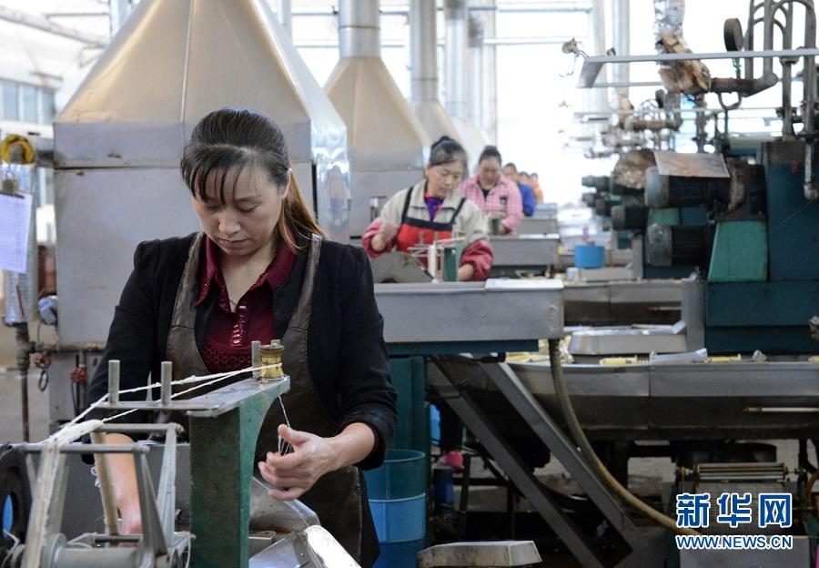 重庆市黔江区双河丝绸有限公司厂房内,工人们正在忙碌。新华网发