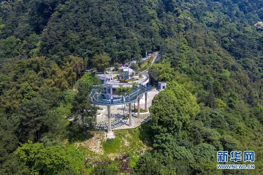 航拍缙云山马中咀凭风看云观景台,青山如画,苍翠欲滴。新华网发(资料图 秦廷富 摄)