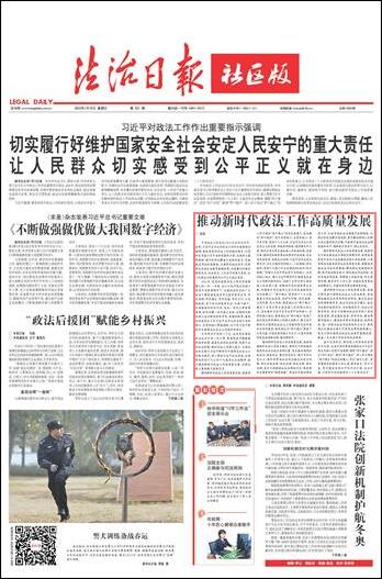 今年将召开党的二十大,这是党和国家政治生活中的一件大事,需要保持平稳健康的经济环境、国泰民安的社会环境、风清气正的政治环境,做好政法工作意义重大。全国政法机关要以习近平新时代中国特色社会主义思想为指导,深入贯彻习近平法治思想,全面贯彻党的十九大和十九届历次全会精神,奋力推动新时代政法工作高质量发展,在新征程上展现新气象新作为。
