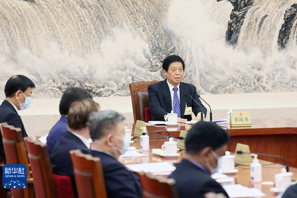 4月19日,十三届全国人大常委会第一百一十五次委员长会议在北京人民大会堂举行。栗战书委员长主持会议。新华社记者 姚大伟 摄