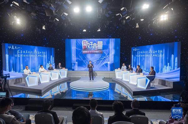 政协委员、政府部门代表、物业代表等在广州市政协“有事好商量”民生实事协商平台,围绕加强装修垃圾管理议题展开协商(2021年11月19日摄)。新华社发(庄小龙 摄)