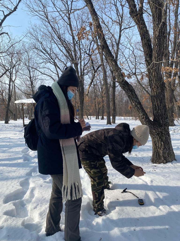 “冬天出来巡护的时候中途不敢在路上歇太久,停下的时间长点身上热气就散了,马上感觉特别冷。”徐春梅说,由于地上积雪太厚,她们一般靠着树干休息一下。每次上山巡护要走大约6.5公里的路,正常要走三四个小时,冬季由于行走艰难,时间就更长了。