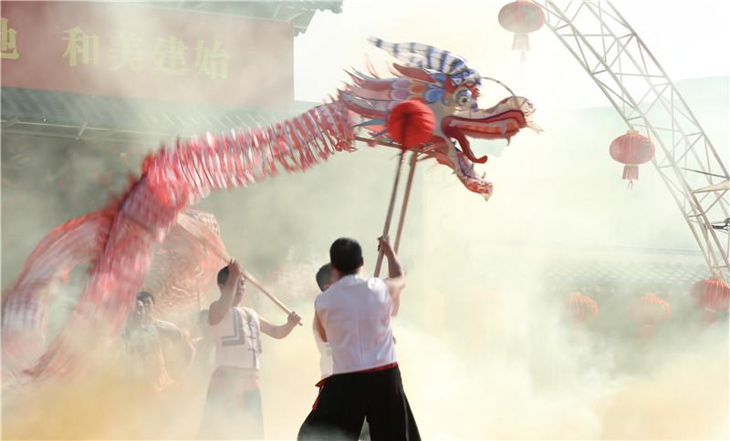 装龙、“点睛”、祭拜祖龙、抛五谷、火龙开喉等一系列传统火龙民俗表演让村里热闹非凡,金色的火龙、红色的狮子和彩色莲船在村落里上下翻飞、龙腾虎跃,连绵数十米。