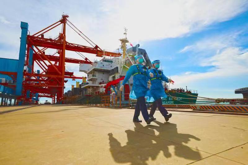 为确保春节期间口岸安全畅通,洋浦边检站严格落实勤务工作开展流程、防护标准、执法规范等,实现国际货运船舶到港“零等待”作业、离港“零延时”验放,全力保障船舶安全有序、便捷高效进出港口。