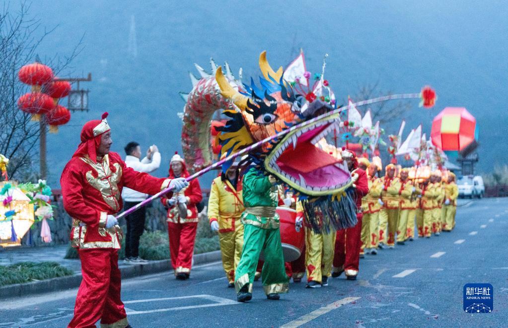 当日,浙江省杭州市淳安县里商乡举行2023元宵节花灯巡游,为当地山乡增添了热闹的元宵氛围。