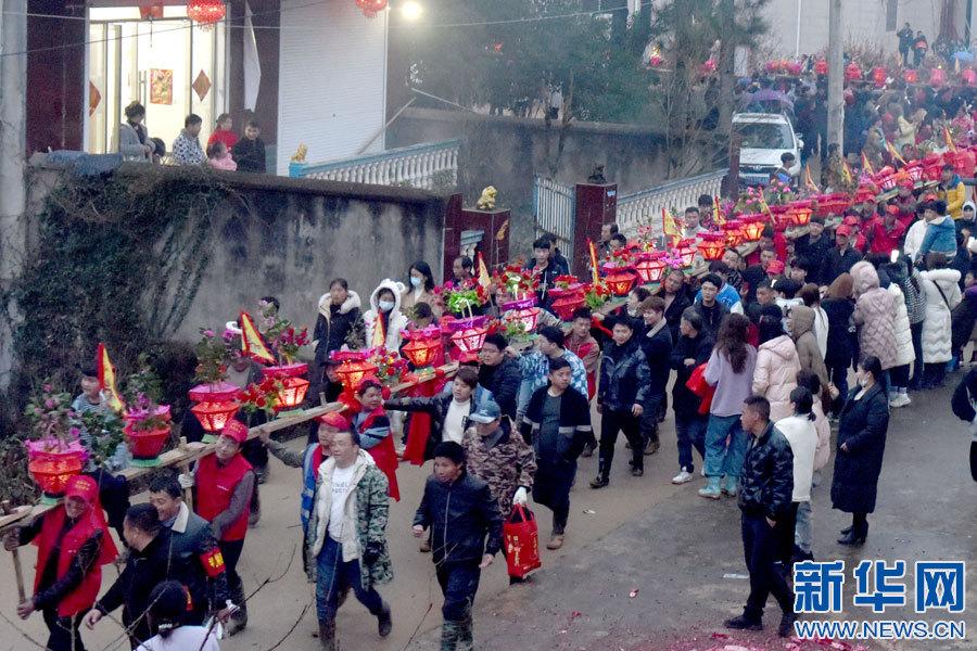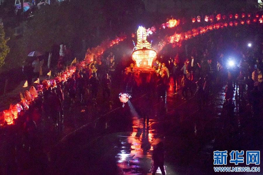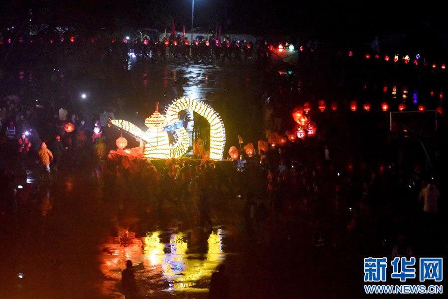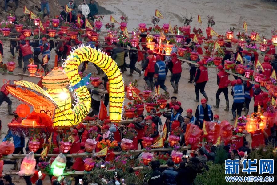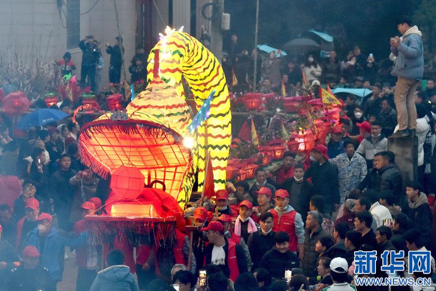 景德镇市乐平市礼林镇洄田村板桥龙灯表演。(新华网发 朱定文 摄)