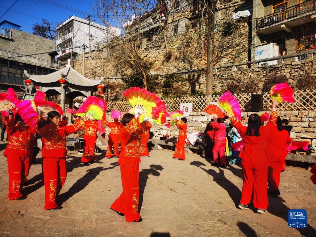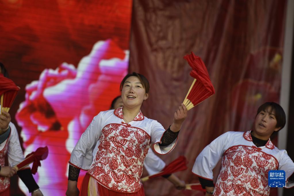 王金庄的村民们在村广场表演舞蹈。(新华社记者 赵鸿宇摄)