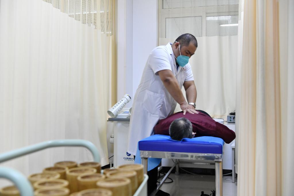 2023年1月15日,唐山市丰南区中医院医师在为患者推拿。新华社记者牟宇 摄