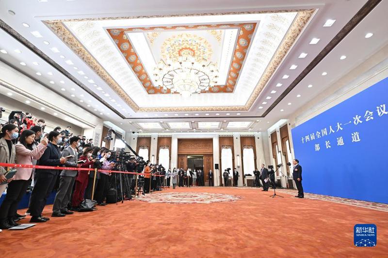3月5日,第十四届全国人民代表大会第一次会议举行首场“部长通道”采访活动。新华社记者 刘金海 摄