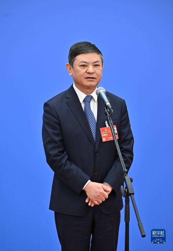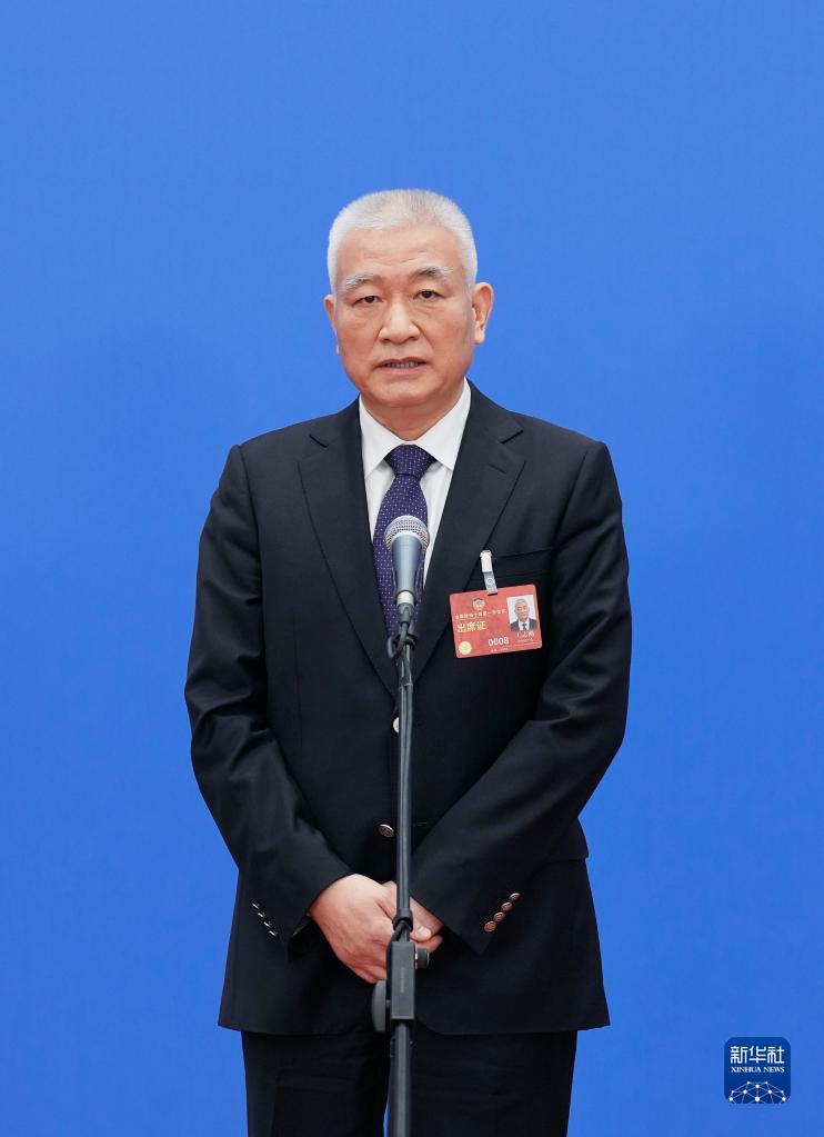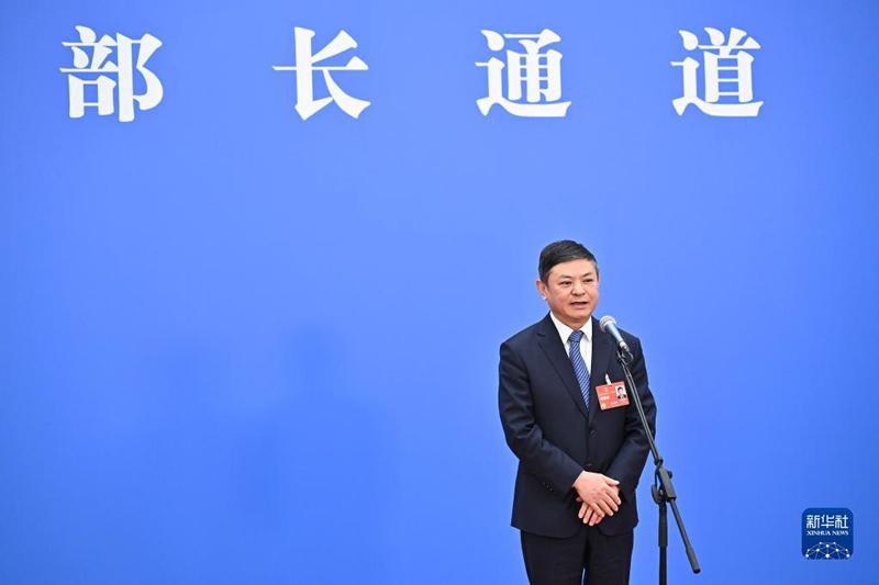 3月5日,第十四届全国人民代表大会第一次会议举行首场“部长通道”采访活动。这是工业和信息化部部长金壮龙接受媒体采访。新华社记者 才扬 摄