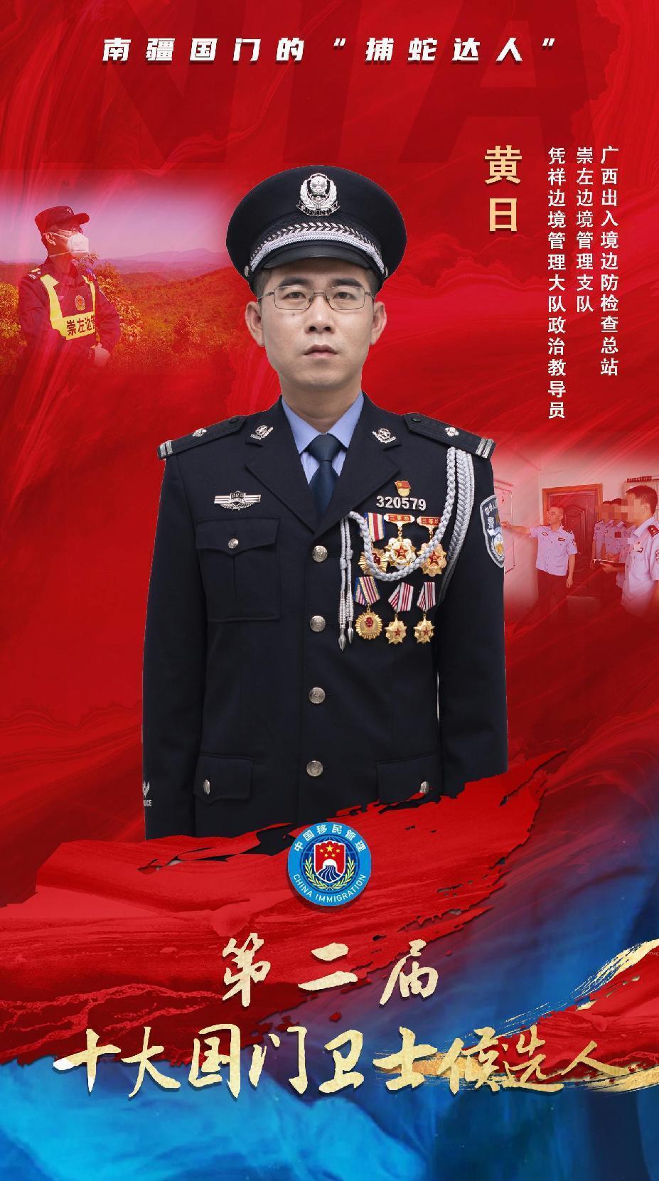 黄日,男,壮族,1983年10月出生,2007年11月入党,2004年6月参加工作,现任广西出入境边防检查总站崇左边境管理支队凭祥边境管理大队政治教导员。