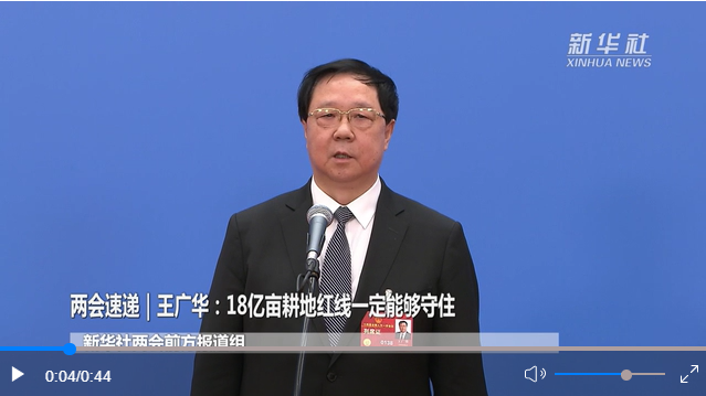 3月12日,第十四届全国人民代表大会第一次会议举行第三场“部长通道”采访活动。自然资源部部长王广华表示,18亿亩耕地红线一定能够守住。
