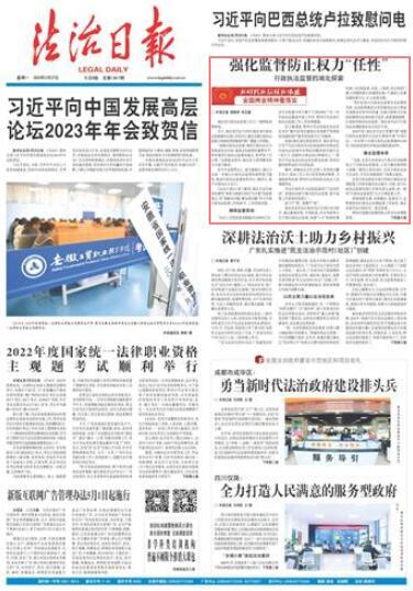 “我们还加大行政执法监督在法治绩效考核、法治政府建设示范创建和法治化营商环境建设中的考评权重,实施与转移支付挂钩的激励办法和向地方党委、政府通报制度,以效能考核促执法监督。”湖北省司法厅行政执法协调监督处处长向安平说。