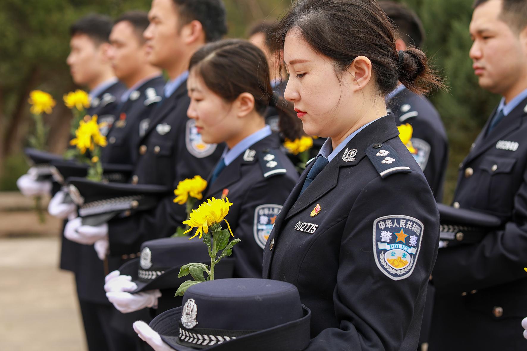 3月31日,陕西省大荔县公安局交管大队民警来到荔北战役烈士陵园,开展清明祭英烈主题党日活动。