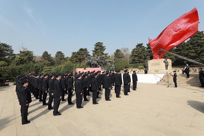 日前,按照北京市公安局“致敬·缅怀·奋进”——首都公安英烈纪念活动整体安排,来自局属各单位的功模代表、2022“北京榜样·最美警察”当选者、北京警察学院学生党员代表、石景山分局党员民警代表共计100余人,在八宝山革命公墓举办缅怀首都公安英烈活动。在革命公墓墓区、烈士骨灰堂、英烈墙,全体人员向在这里安放骨灰的北京公安烈士敬献鲜花、行鞠躬礼并聆听烈士生平。他们擦拭墓碑,重温公安英烈的光辉事迹,向为维护首都社会安定、人民幸福安宁献出宝贵生命的公安英烈致以崇高敬意,表达深切哀思。