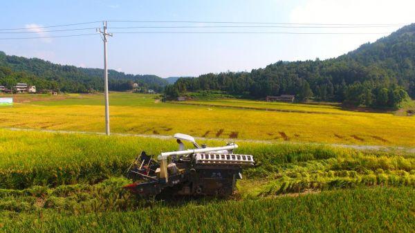 农机收割水稻(恩阳区委组织部供图)