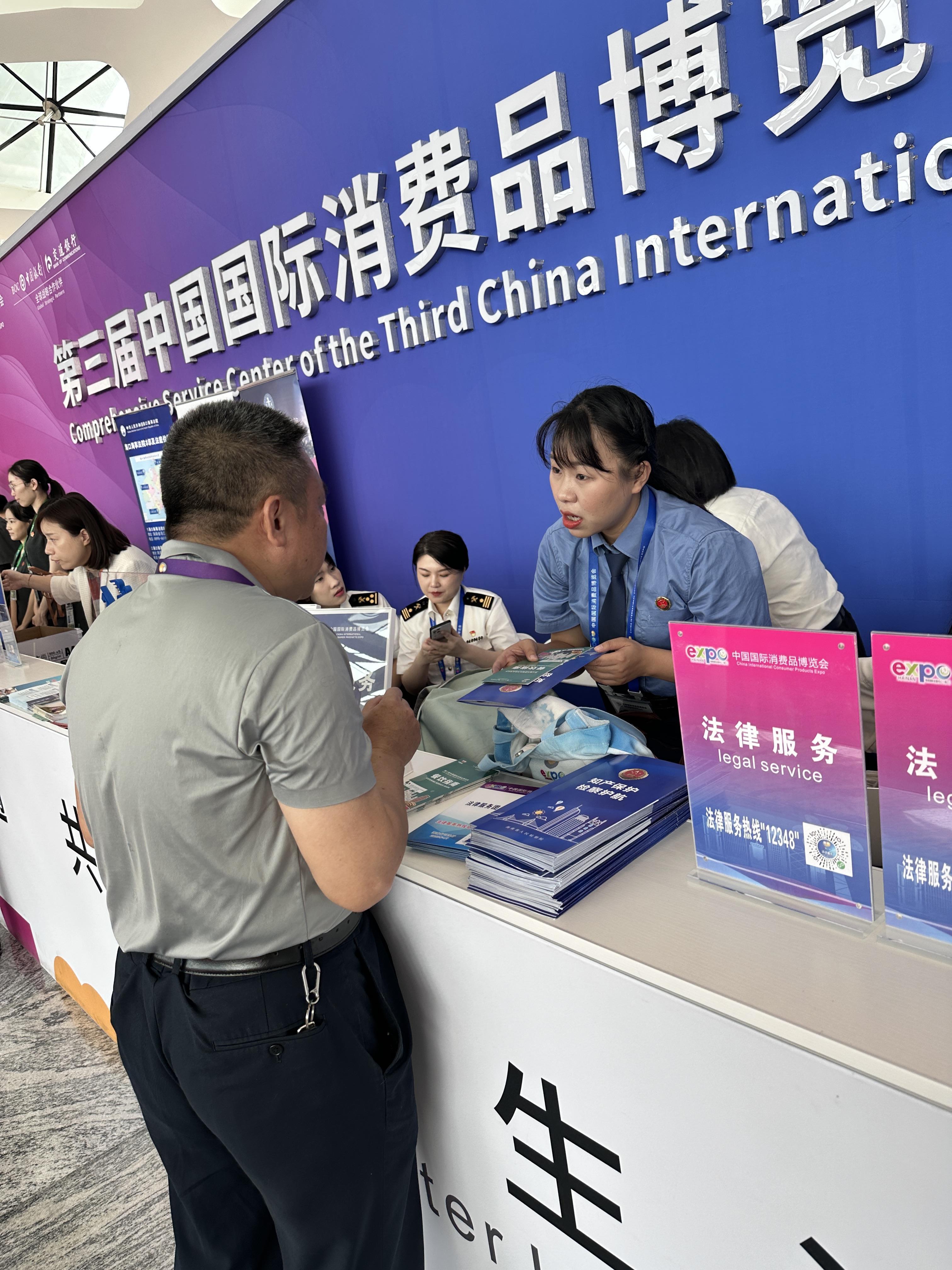 2023年4月10日至15日,第三届消博会在海南海口举办,为全面做好第三届消博会知识产权保护工作,4月11日起,海南省高级人民检察院第一分院进驻展会,在综合服务处设置服务窗口,指派一分院知识产权检察办公室,开展知识产权保护法治宣传活动。